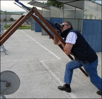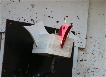 Le tireur prend appui sur un chevalet et doit les faire tomber dans un ordre bien précis.